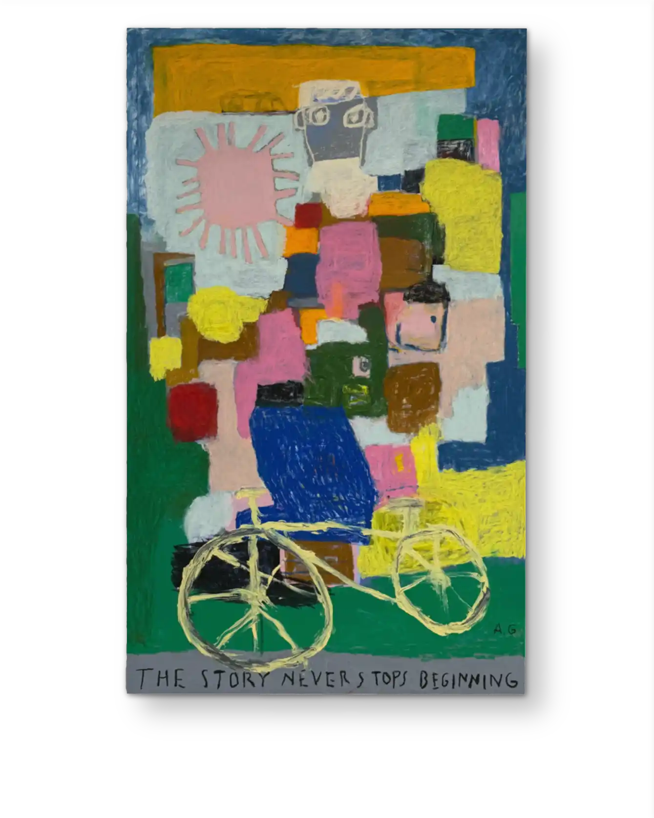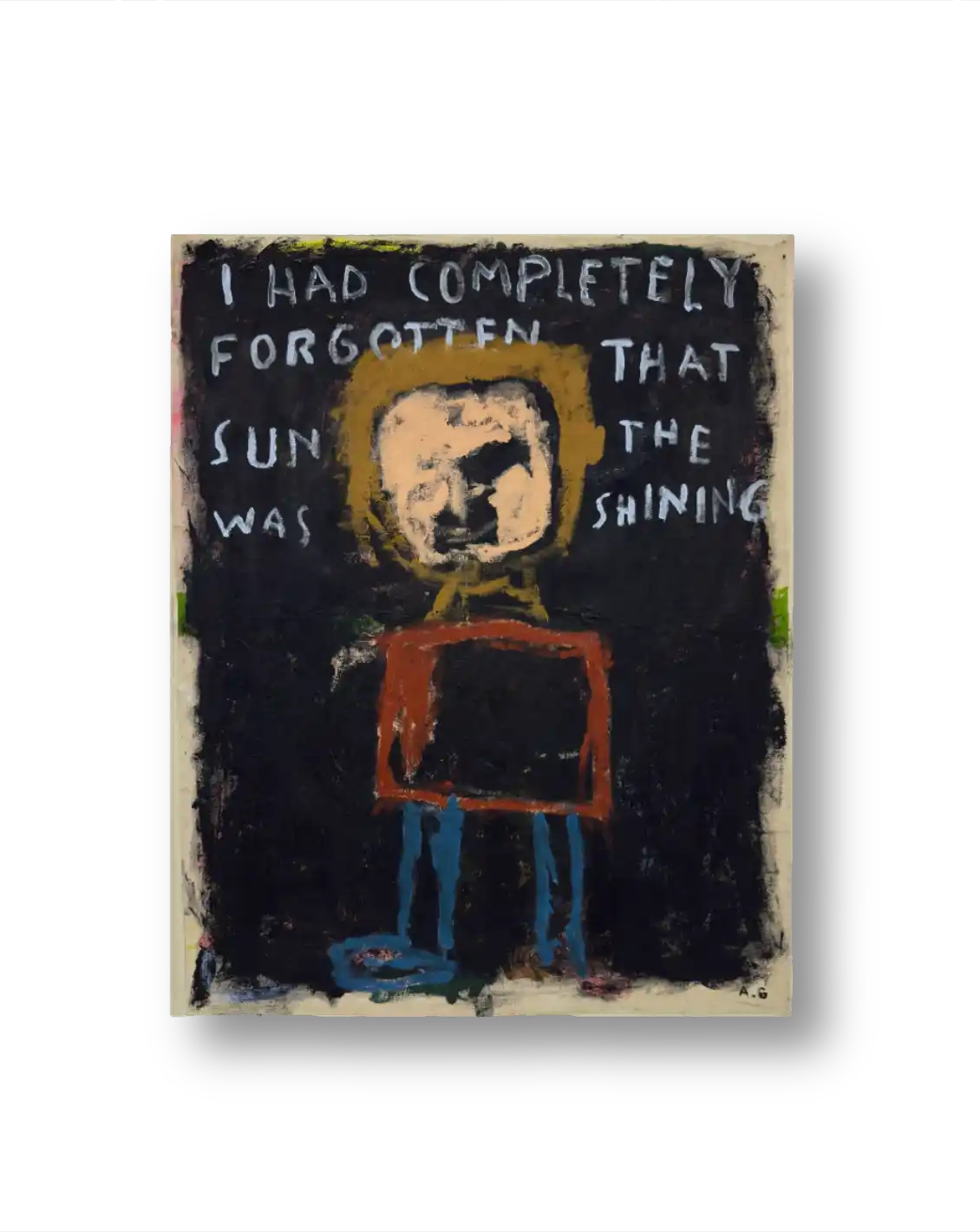 From his studio in the rainy city of Bergen, Norwegian contemporary artist Andreas Gravdal, tries to convey honesty and overseen details of everyday life. His bold figurative paintings are done in a naive and rough approach, often using words on the canvas as an overstating effect. Shipping internationally.